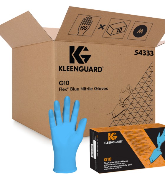 • 1,000 KleenGuard ™ G10 Flex Nitrile Gloves (10 cartons of 100), Medium Size, Blue Nitrile Gloves