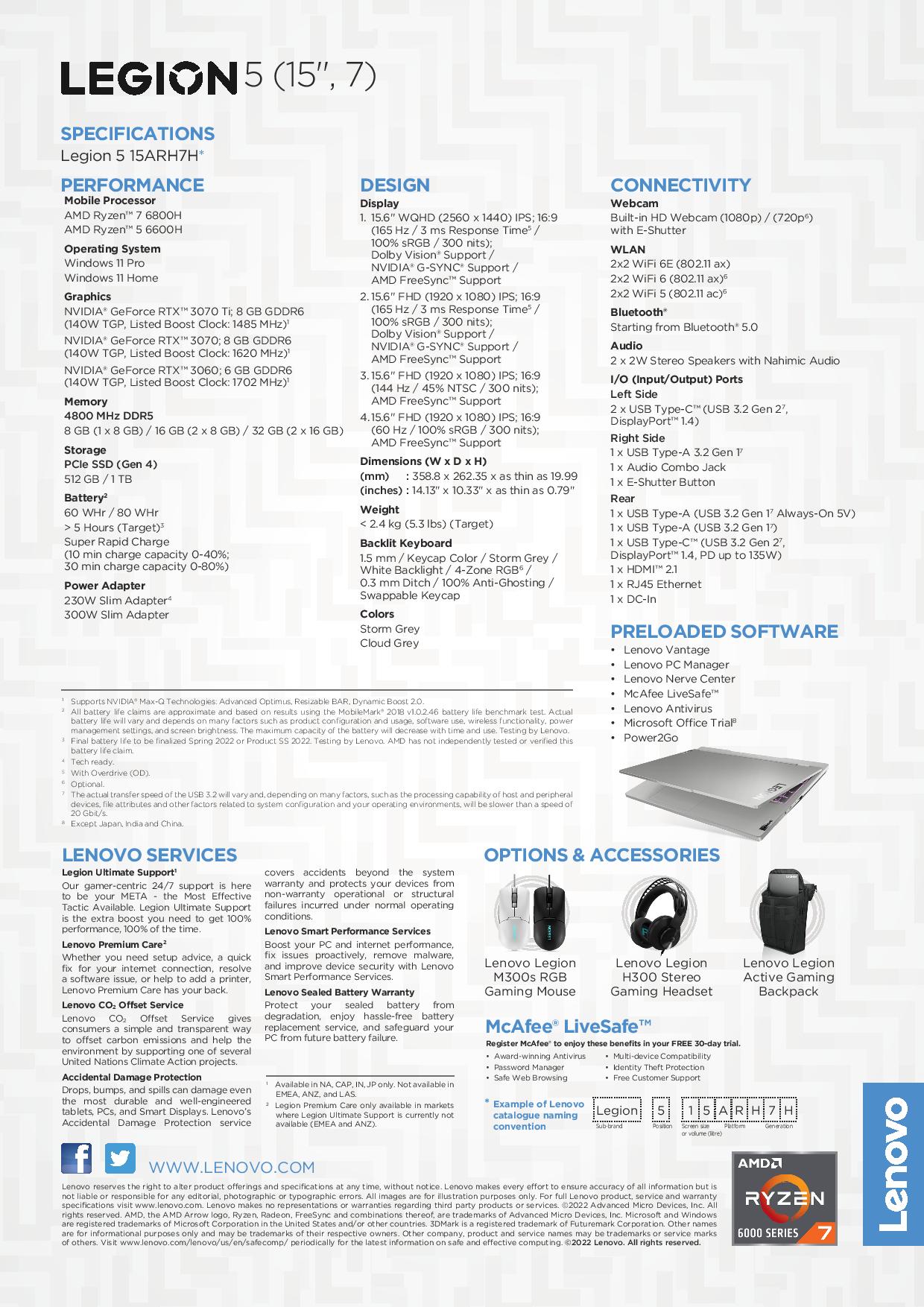 [RTX 3060]联想军团5 15ARH7H | 82RD0002SB | 15.6英寸WQHD(2560x1440)| AMD Ryzen 7 6800H | RTX 3060 | 16GB RAM | 1TB SSD | Win11主页| 3Y军团终极支持
