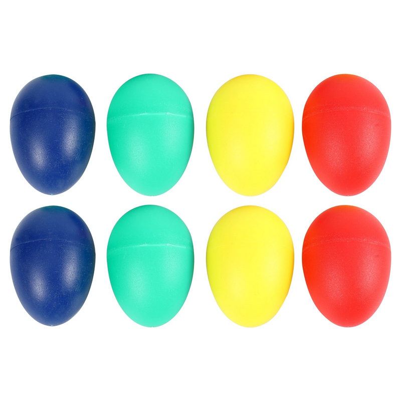 Set of 8 music egg shakers, Assorted colors: Green x 2, Yellow x 2, Blue x 2, Red x 2