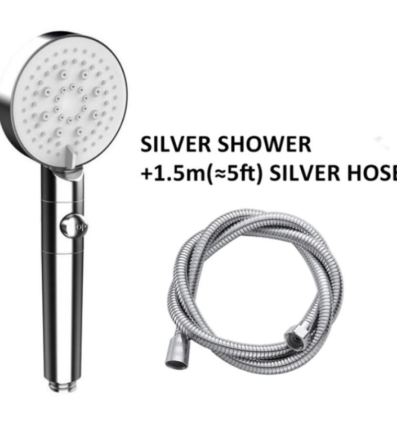 High Pressure Shower Head 5 Modes Adjustable Showerheads with 1.5m Hose Water Saving One-Key Stop Spray Nozzle Bathroom Showerhead Accessories