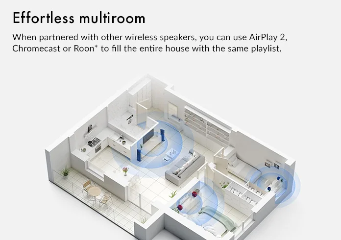When partnered with other sets of LS Wireless speaker systems including LSX II, LS50 Wireless II and LS60 Wireless, you can use AirPlay 2, Chromecast or Roon to fill your entire house with music. It’s perfect for parties where everyone in different rooms can enjoy the same playlist.